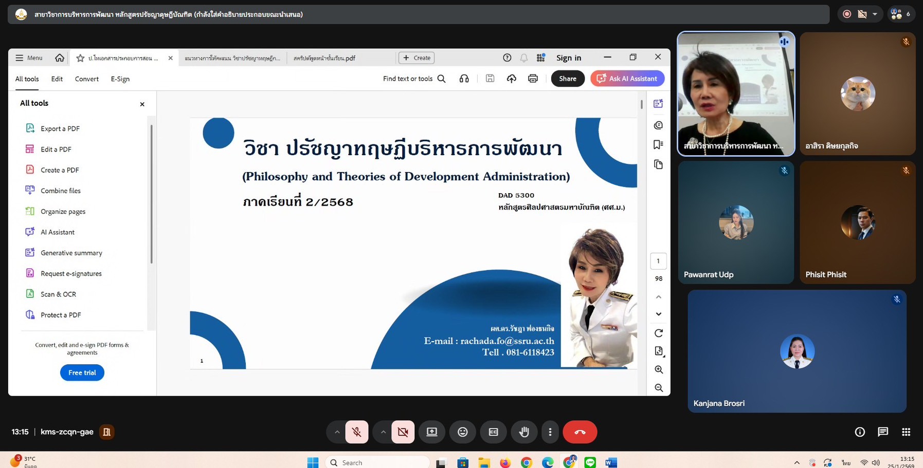 หน้าหลัก > ข่าว > การเรียนการสอน > ประมวลภาพการจัดการเรียนการสอนรายวิชาDAD5300 ปรัชญาและทฤษฎีการพัฒนา ปริญญาโท โดย รศ.(พิเศษ) ดร.รัชฎา ฟองธนกิจ ในวันอาทิตย์ที่ 25 มกราคม 2569 เวลา 09.00-16.00 น. แลรูปแะผ่านบบออนไลน์ Google meet